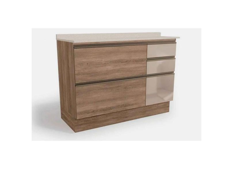 Balcão De Cozinha Maxxi G747 4 Gavetas C- Vidro E 1 Porta C-tampo 120cm Nogal-orion - Kappesberg