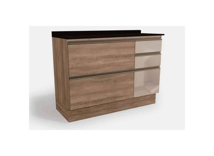 Balcão De Cozinha Maxxi G747 4 Gavetas C- Vidro E 1 Porta C-tampo 120cm Nogal-preto - Kappesberg