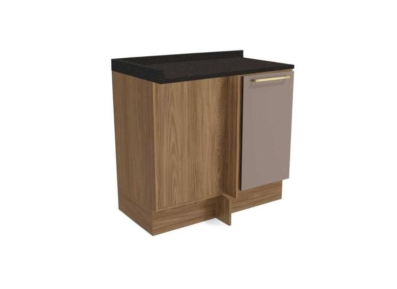 Balcão de Cozinha Modulado Botanic M625 Canto Reto 1 Porta c/Tampo 98cm Nogueira/Fendi/Preto Brilho - Kappesberg