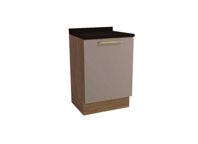 Balcão de Cozinha Modulado Botanic M629 1 Porta c/Tampo 60cm Nogueira/Fendi/Preto - Kappesberg