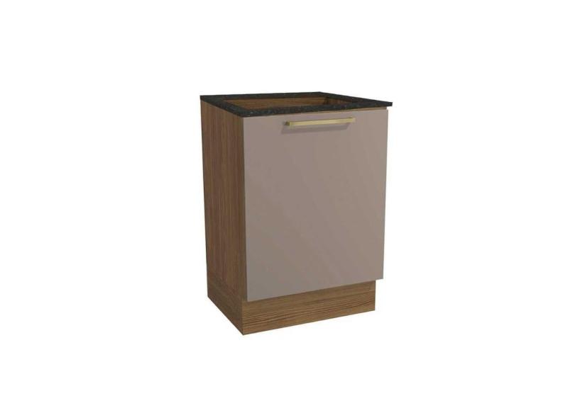 Balcão de Cozinha Modulado Botanic M629 p/Cooktop 1 Porta c/Tampo 60cm Nogueira/Fendi/Preto Brilho - Kappesberg