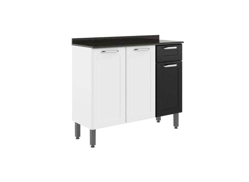 Balcão De Cozinha Modulado Dona Maria 6173 3 Portas E 1 Gaveta c- Tampo E Pés Branco-preto