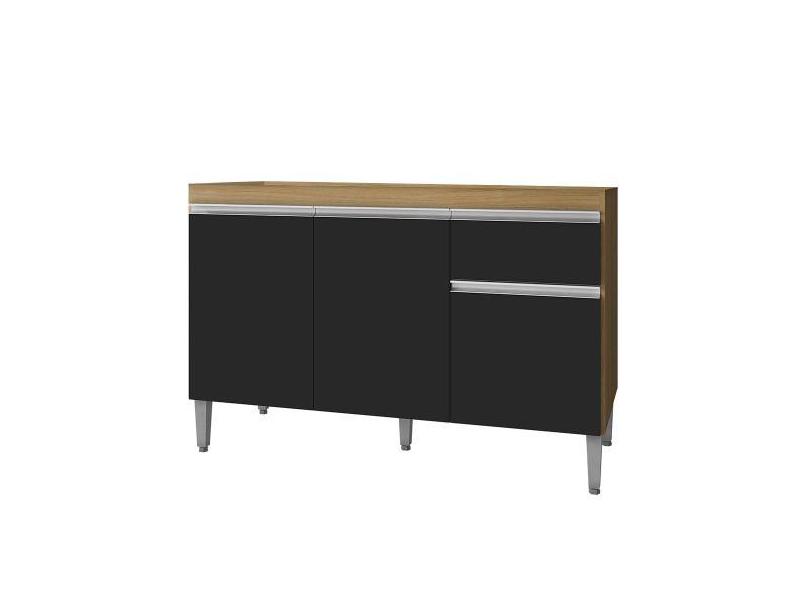 Balcão De Cozinha Para Pia 120cm 1 Gaveta Tatiane Amêndoa/Preto - Ajl