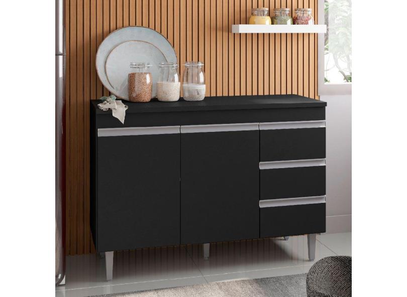 Balcão de Cozinha para Pia Andréia 120cm sem Tampo Cor Preto - AJL Móveis