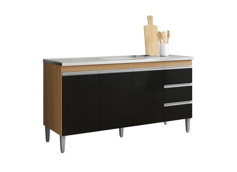 Balcão de Cozinha para Pia Andréia 160cm Amêndoa/Preto S/ Tampo - AJL Móveis