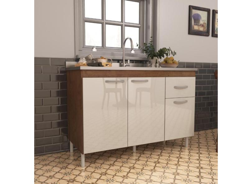 Balcão de Cozinha para Pia de 120cm Sem Tampo Suiça Fidelitá 3 Portas 1 Gaveta Noce/Off-White