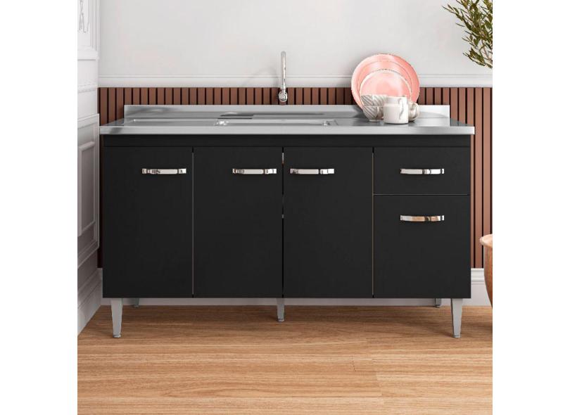 Balcão de Cozinha para Pia Gabriela 150cm 4 Portas 1 Gaveta Sem Tampo Cor Preto - AJL Móveis