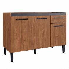 Balcão de Cozinha para Pia Giovanna 3 Portas 1 Gaveta Freijó/Preto - Irm Móveis