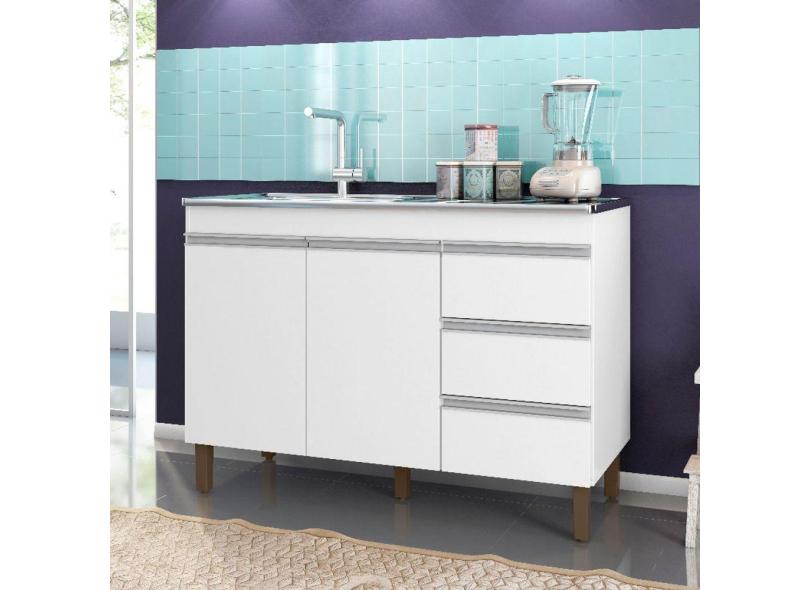 Balcão De Cozinha Para Pia Karen 120Cm Sem Tampo 2 Portas E 3 Gavetas Branco - Peternella Móveis