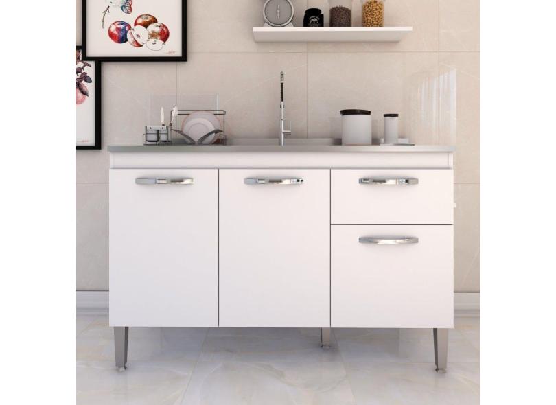Balcão de Cozinha para Pia Vieira 3 Portas 1 Gaveta Branco - Pnr Móveis