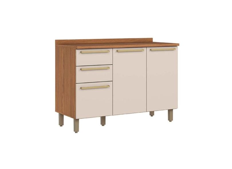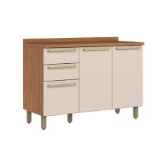 Balcão de Cozinha Requinte p/ Pia 3 Portas e 2 Gavetas c/Tampo 120cm Nature/Areia - Henn