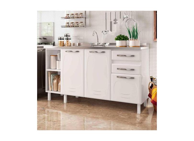 Balcão De Cozinha Star New 3 Portas 2 Gavetas Branco - Telasul