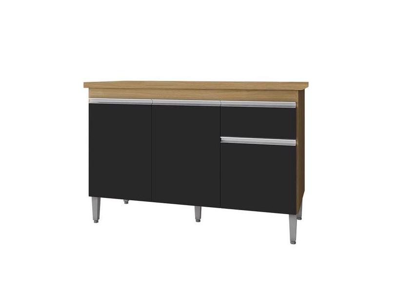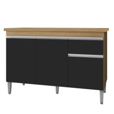 Balcão De Cozinha Tatiane 120 Cm Amendoa Preto Com Tampo Mdp Ajl Móvei