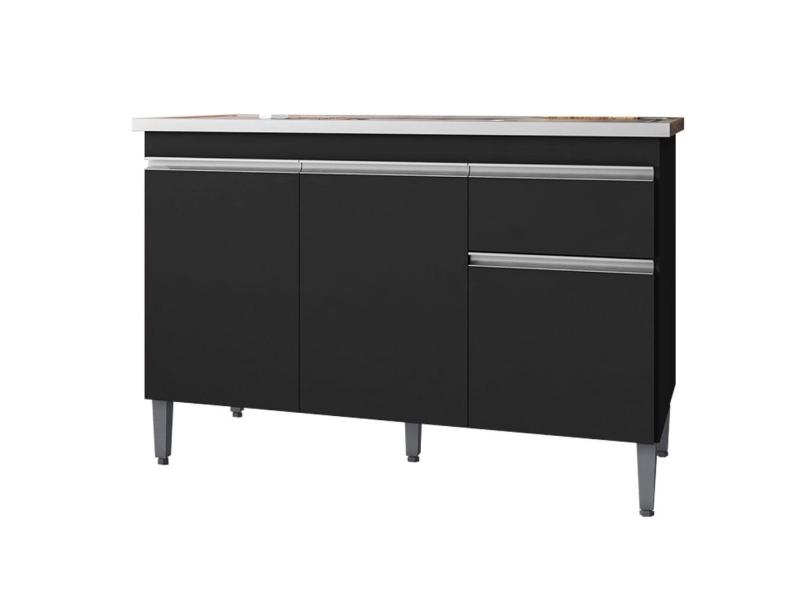Balcão de Cozinha Tatiane 120 cm Preto Fosco 2000 Com Tampo mdp ajl Móveis