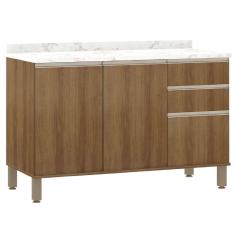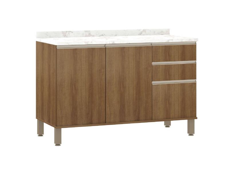 Balcão De Cozinha Triplo Com Tampo 3 Portas 2 Gavetas 1,20m Madeirado areia Diana Luciane Av/areia