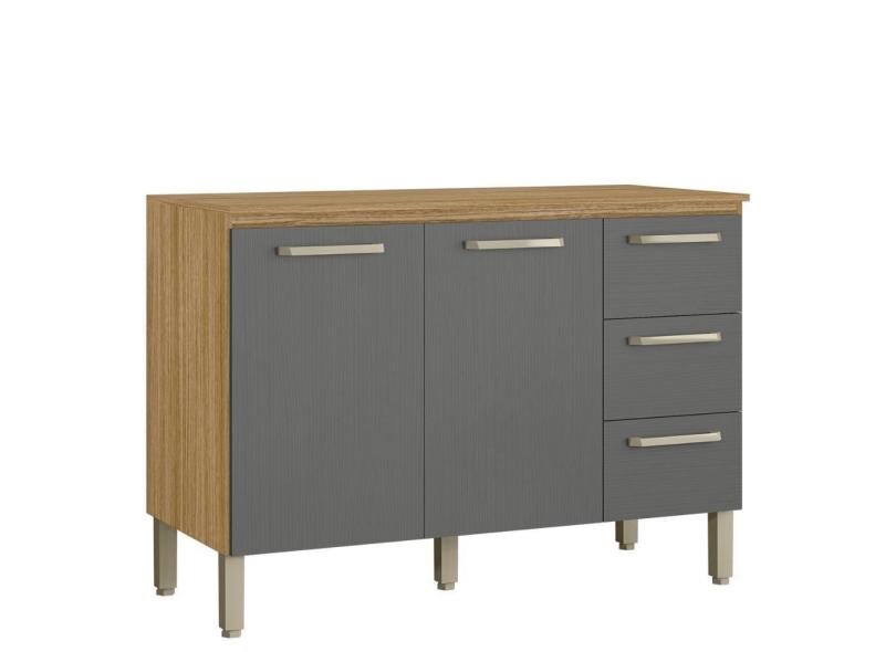 Balcão De Pia 120 Cm 2 Portas E 3 Gavetas C/Tampo Freijó