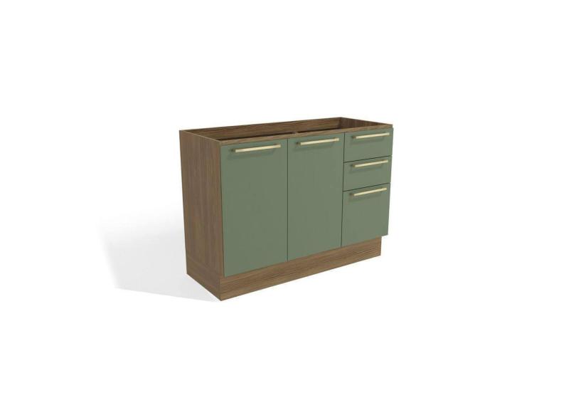 Balcão de Pia 120cm 2 Portas 3 Gavetas Kappesberg Nogueira/Verde Oliva