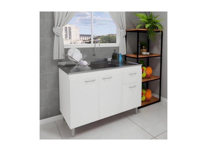 O menor preço encontrado no Brasil para Balcão de Pia Cozinha 120cm Armário Gabinete Morgana Branco atualmente é R$ 459,98.