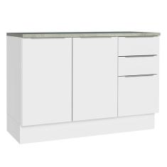 Balcão De Pia Cozinha 2 Portas E 3 Gavetas (com Tampo) Branco Stella Madesa Branco