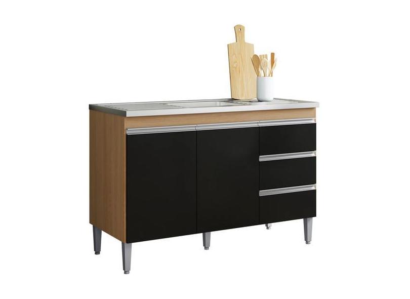 O menor preço encontrado no Brasil para Balcão de Pia Cozinha Andréia 100 cm Amêndoa Preto Sem Tampo AJL Móvei atualmente é R$ 320,85.
