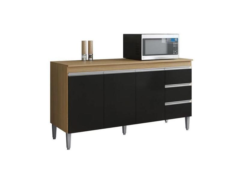 Balcão De Pia Cozinha Andréia 150 Cm Amendo Preto Sem Tampo Ajl Móveis