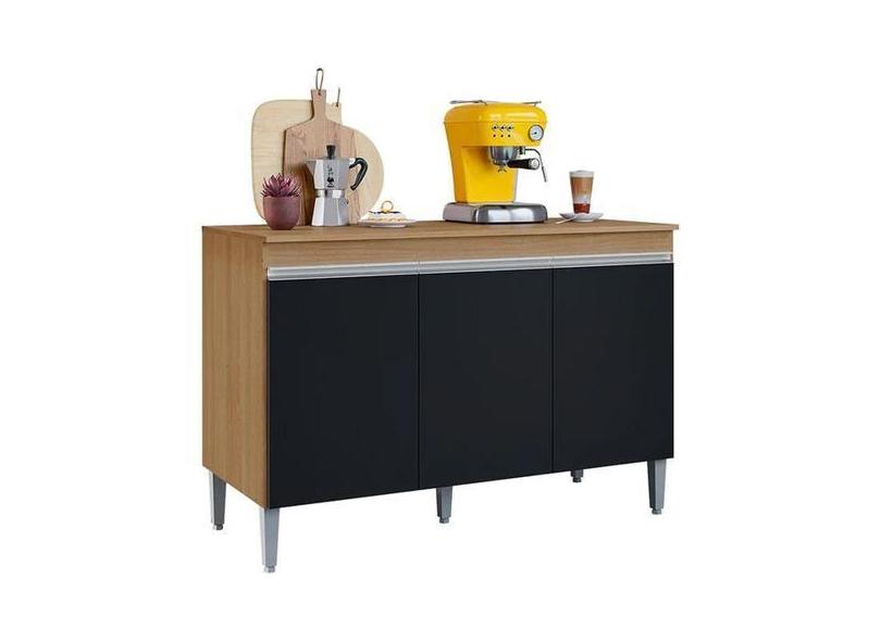 Balcão De Pia Cozinha Manu 120 Cm Amendoa Preto Sem Tampo Ajl Móveis