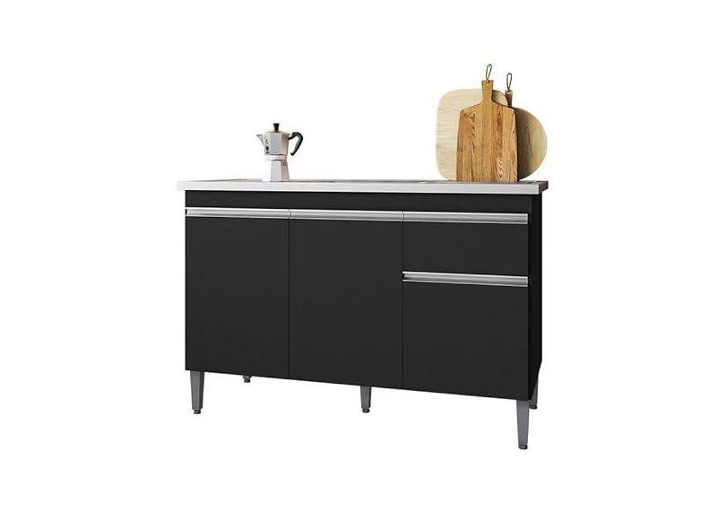 Balcão de Pia Cozinha Tatiane 120 cm Preto Fosco Sem Tampo Ajl Móveis