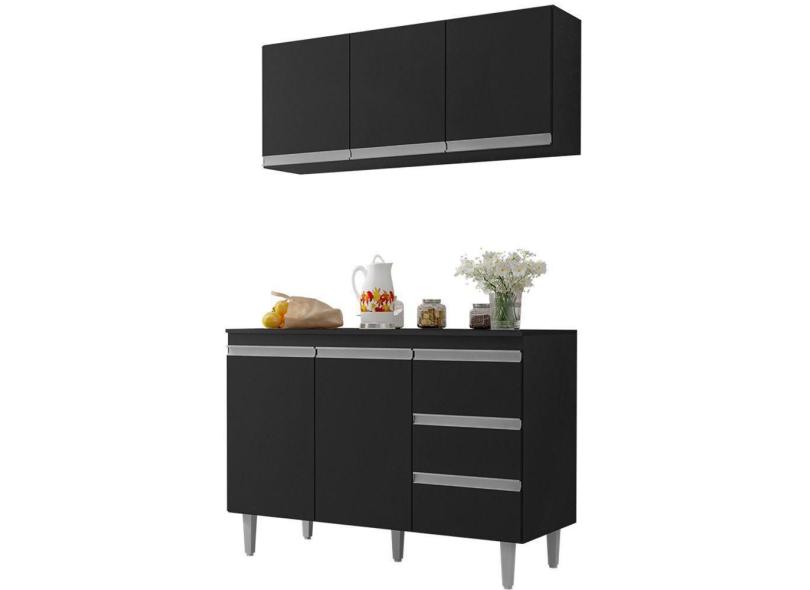 Balcão De Pia E Aéreo Cozinha 120 Cm Preto Sem Tampo
