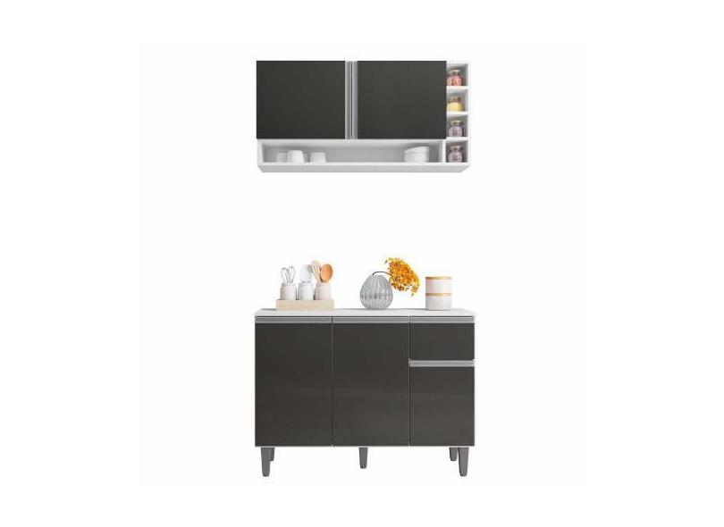 Balcão De Pia E Aéreo Cozinha Vanessa 105cm Branco Cinza 1925 Sem Tamp