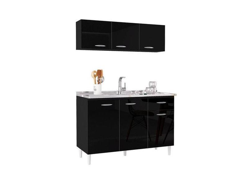 Balcão De Pia E Armário Aéreo 120 Cm Preto Poquema - Poquema Industri