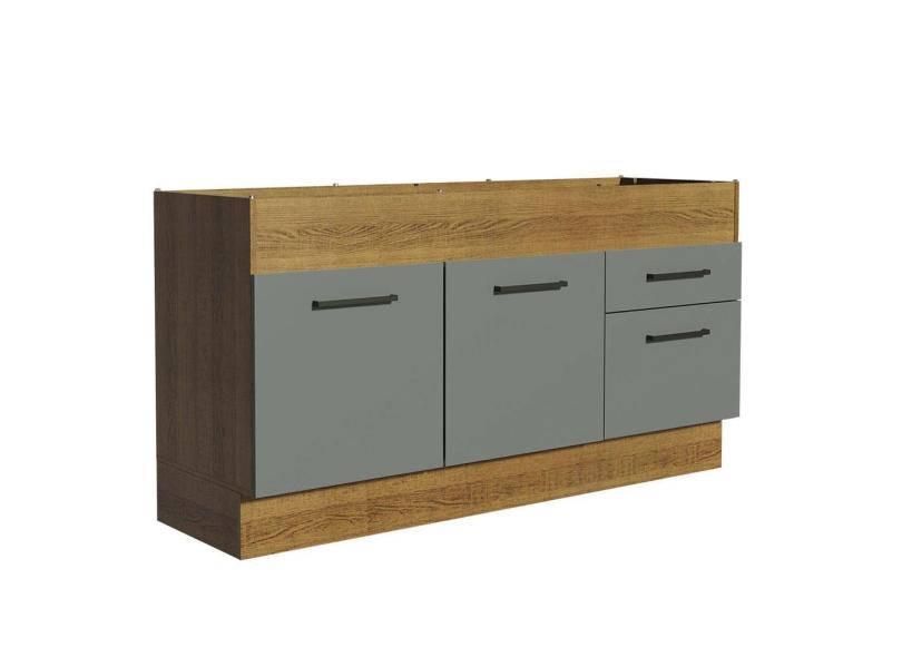 Balcão de Pia Madesa Agata 150 cm 2 Portas e 2 Gavetas (Sem Tampo e Pia) - Rustic/Cinza