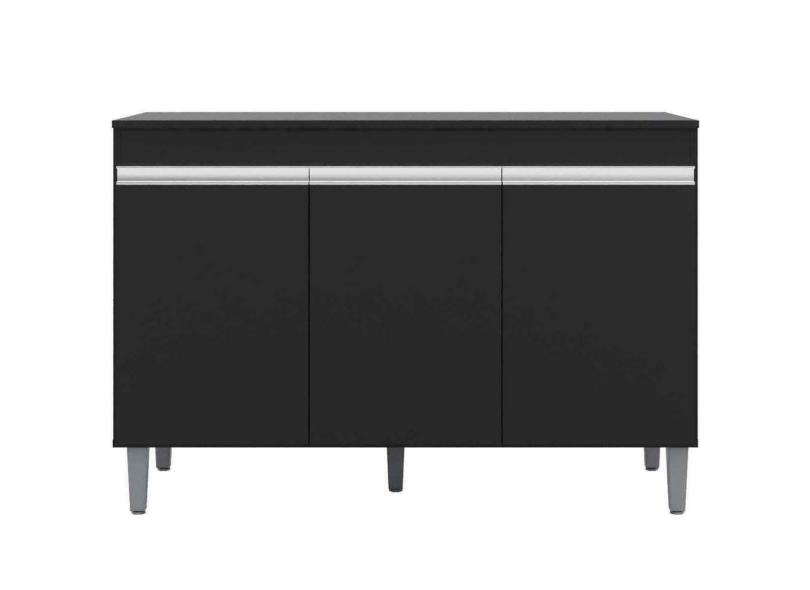 Balcão De Pia Para Cozinha 120 Cm Kadu 3 Portas Preto