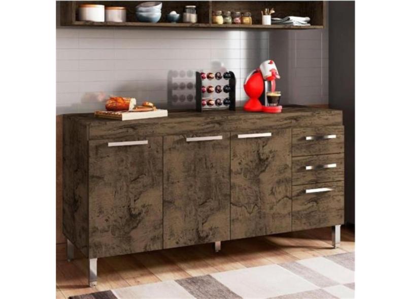 Balcão de Pia para Cozinha Castani 3 Portas 3 Gavetas Dinamarca Casa Moderna