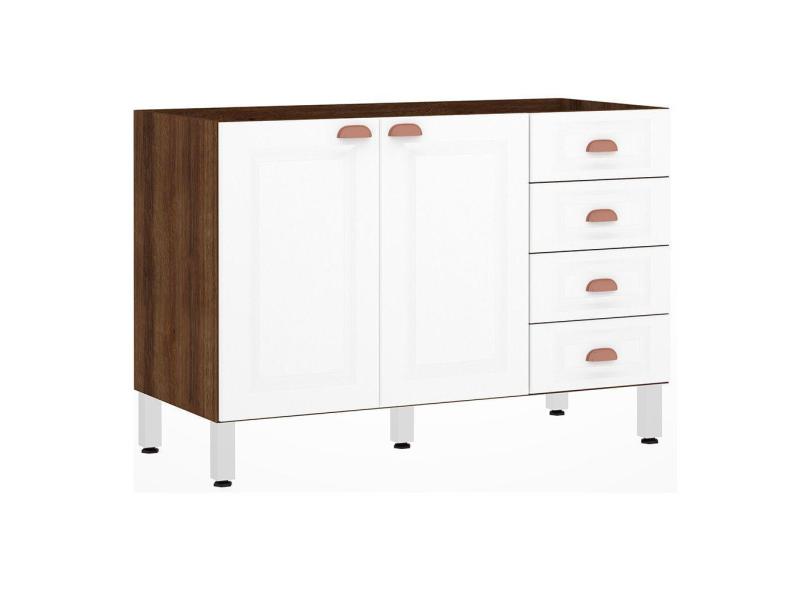 Balcão de Pia sem Tampo para Cozinha 120cm 2 Portas 4 Gavetas Safira Luciane Móveis