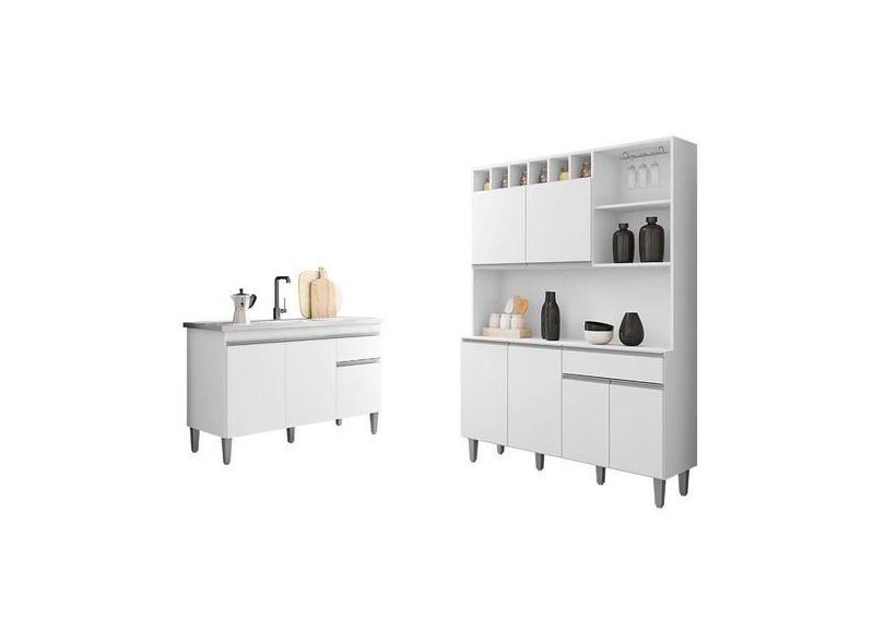 O menor preço encontrado no Brasil para Balcão De Pia Tatiane 120 Cm E Armário Cozinha Kit Alice Branco Brilho atualmente é R$ 674,00.