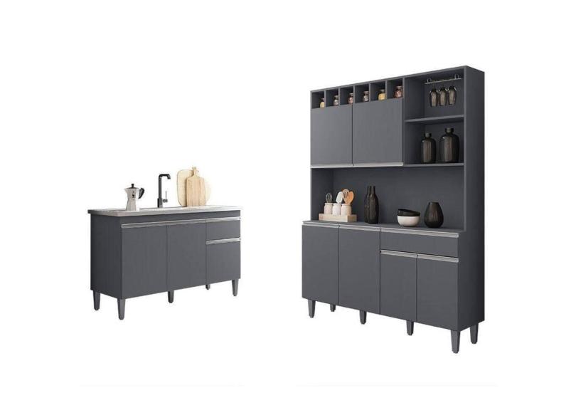 O menor preço encontrado no Brasil para Balcão De Pia Tatiane 120 Cm E Armário Cozinha Kit Alice Cinza Fosco - Ajl atualmente é R$ 687,60.