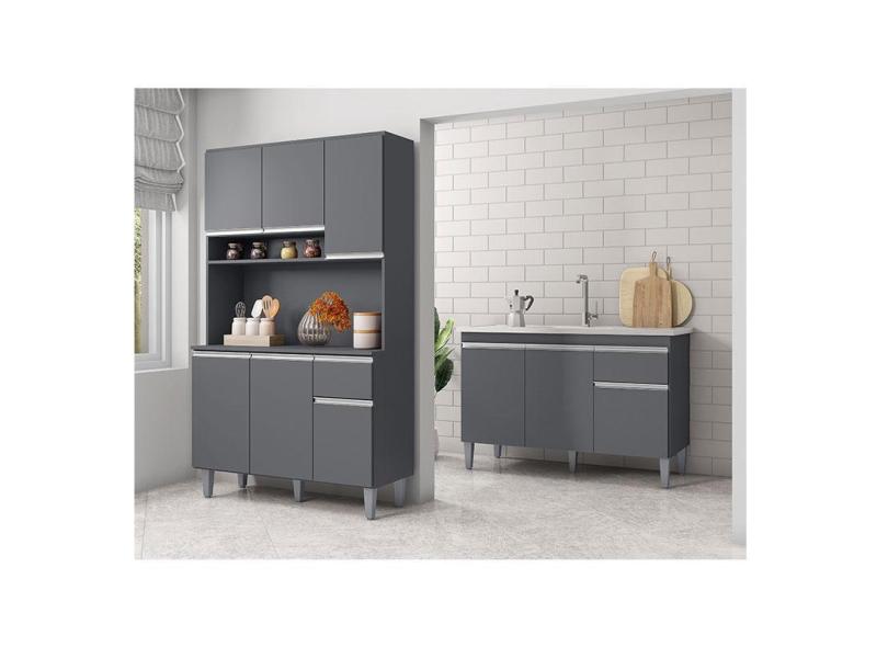 O menor preço encontrado no Brasil para Balcão de Pia Tatiane 120 cm e Armário Cozinha Kit Márcia Ambiente Cinza Fosco - ajl atualmente é R$ 632,10.