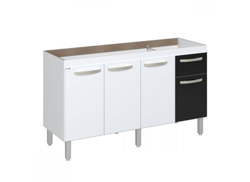 Balcão Flat De Cozinha Para Pia 4 Portas 1 Gaveta 1,43 Branco Com Preto