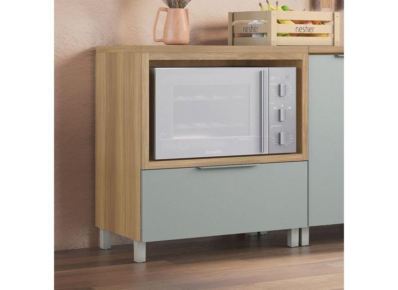 Balcão Forno 1 Gaveta com Caixa Organizadora 80cm 100% MDF Marquesa Marrom/Verde