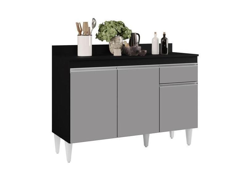 Balcão Gabinete 120cm Com Tampo 3 Portas 1 Gaveta Arizona Preto/Cinza