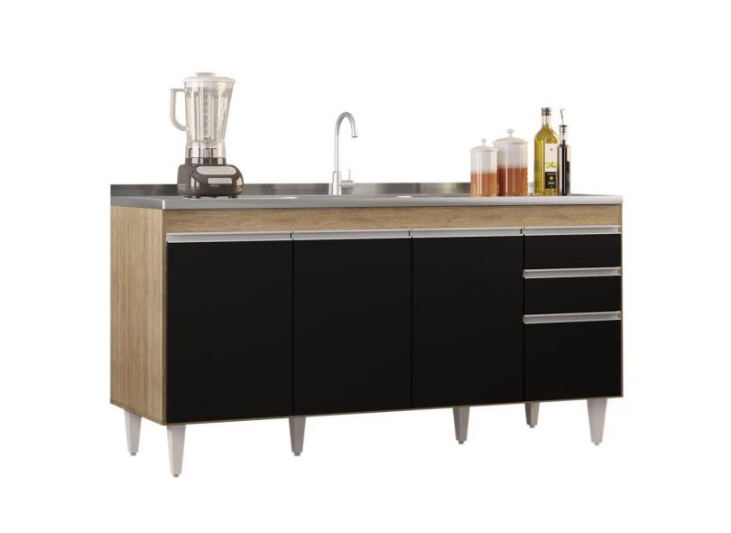 Balcão Gabinete 160cm Sem Tampo 4 Portas 2 Gavetas Arkansas Castanho/Preto - Lumil Móveis