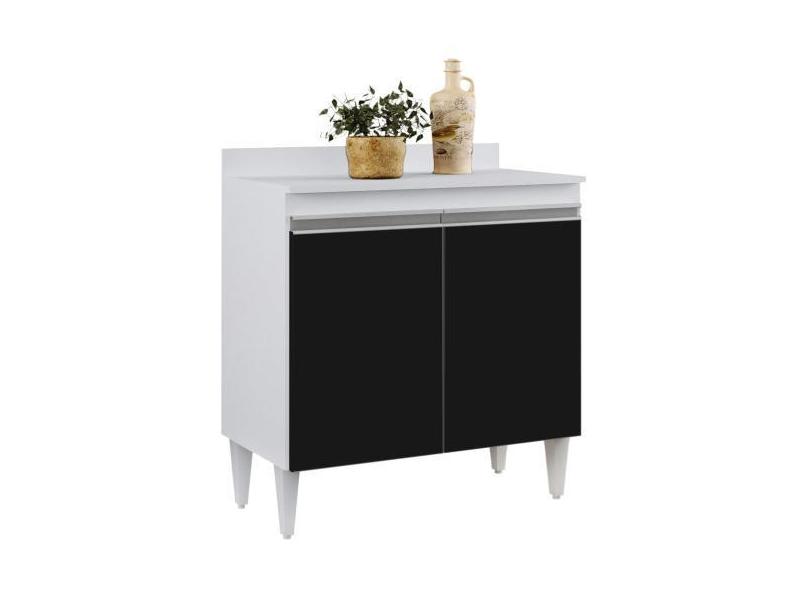 Balcão Gabinete 80cm 2 Portas Hawai Branco/Preto - Lumil Móveis