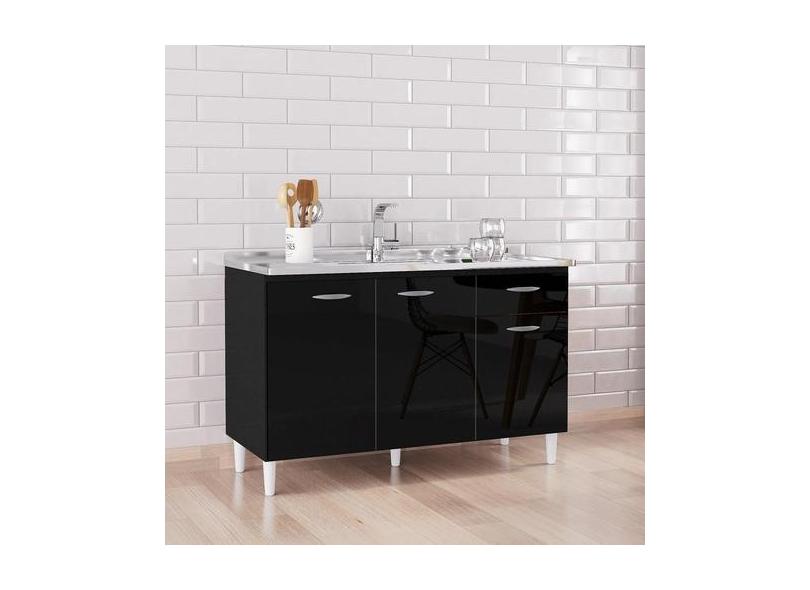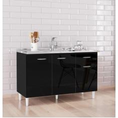 Balcão Gabinete Alice 120Mt Para Pia Sem Tampo Preto Poquema