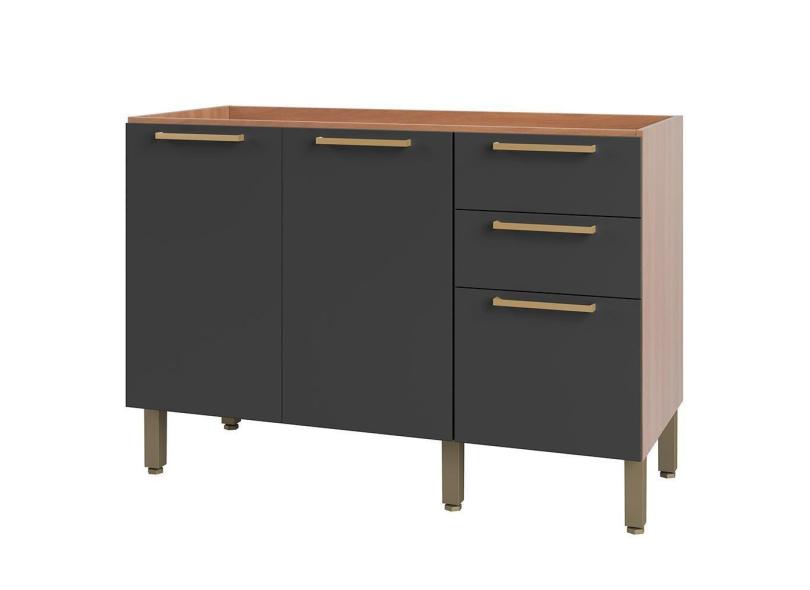 Balcão Gabinete Beatriz 120cm Para Pia 3 Gavetas Freijó E Grafite
