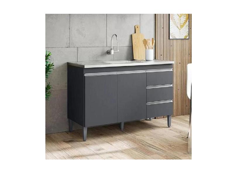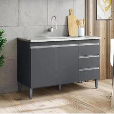 Balcão Gabinete Cinza Escuro Andréia 1 metro Com Tampo AJL