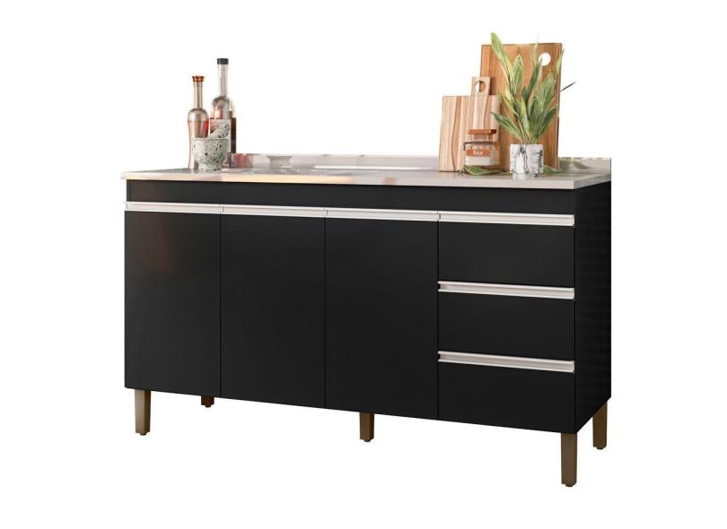 Balcão Gabinete Com Pia 150cm 3 Portas Karen P14 Preto Fosco - Mpozenato