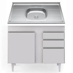O menor preço encontrado no Brasil para Balcão Gabinete Com Pia Inox 100cm 2 Portas 2 Gavetas Luziania Branco - Lumil atualmente é R$ 736,13.