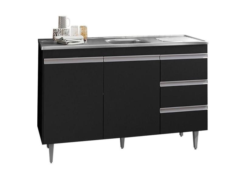 O menor preço encontrado no Brasil para Balcão Gabinete Com Pia Inox 120Cm 2 Portas 3 Gavetas Andréia Preto Total - Ajl Móveis atualmente é R$ 808,63.