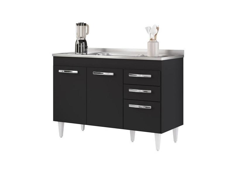 O menor preço encontrado no Brasil para Balcão Gabinete Com Pia Inox 120cm 3 Portas 2 Gavetas Suécia Preto - L atualmente é R$ 744,86.