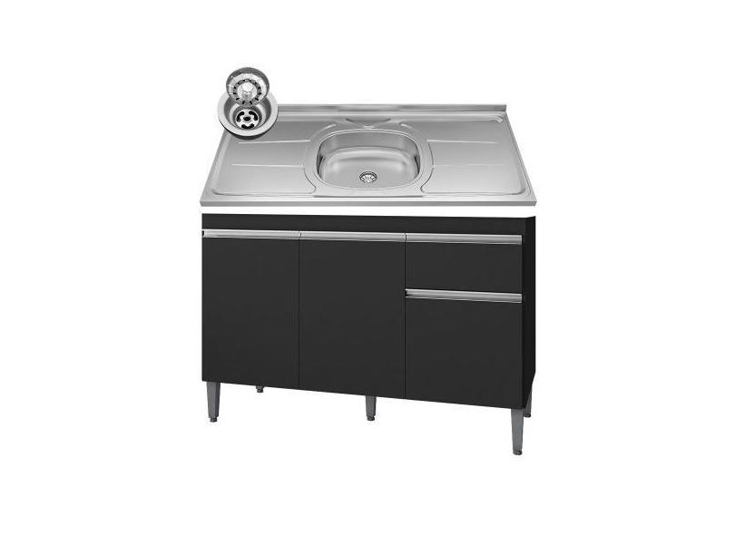 O menor preço encontrado no Brasil para Balcão Gabinete Com Pia Inox 120cm 3 Portas E 1 Gaveta Tatiane Preto - atualmente é R$ 581,76.